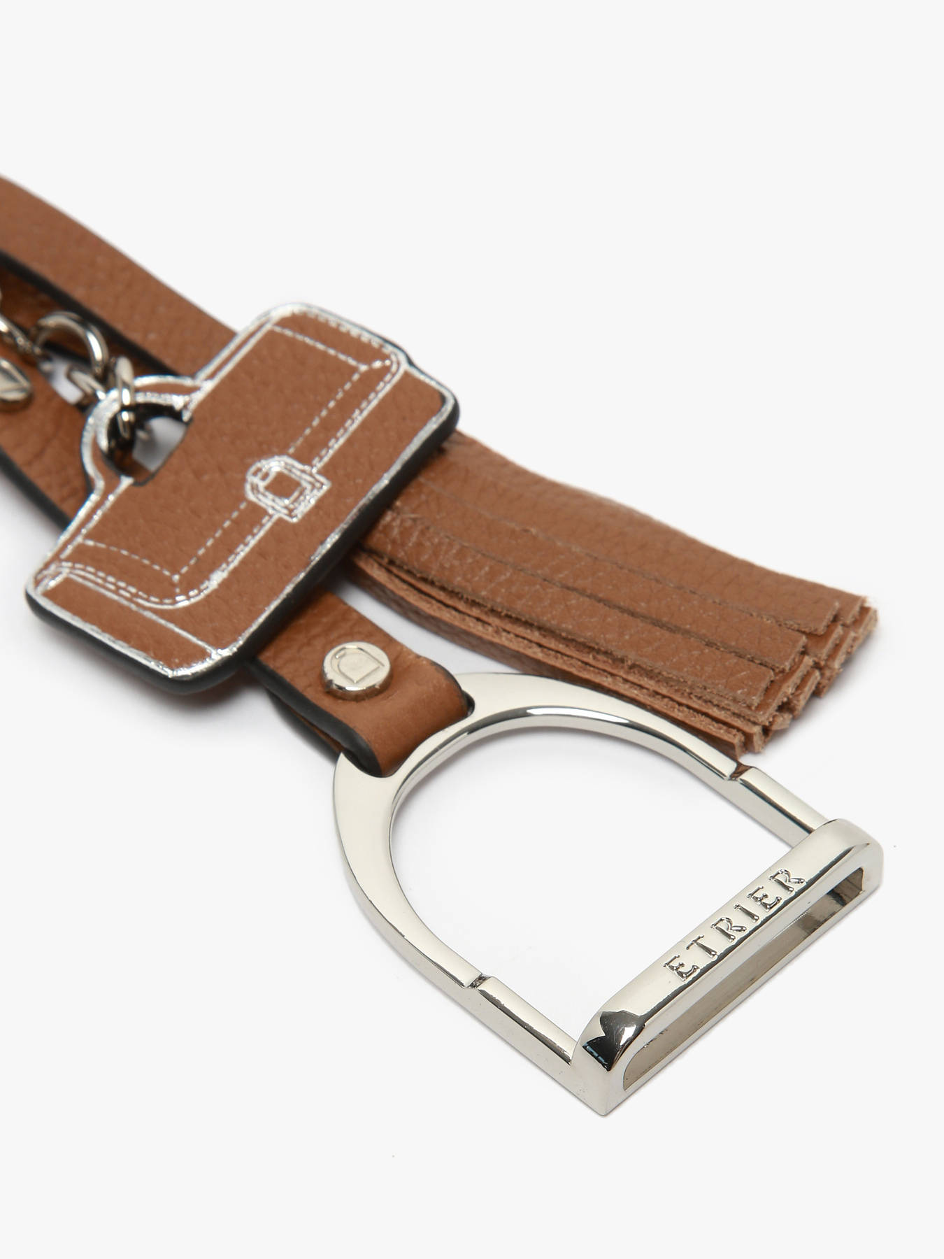 Le bijou de sac ETRIER de la ligne ALTESSE est un accessoire élégant qui reprend l’emblématique sac Altesse en miniature. Agrémenté d’un pompon en cuir doux, il apporte une touche raffinée à vos clés ou à vos sacs.