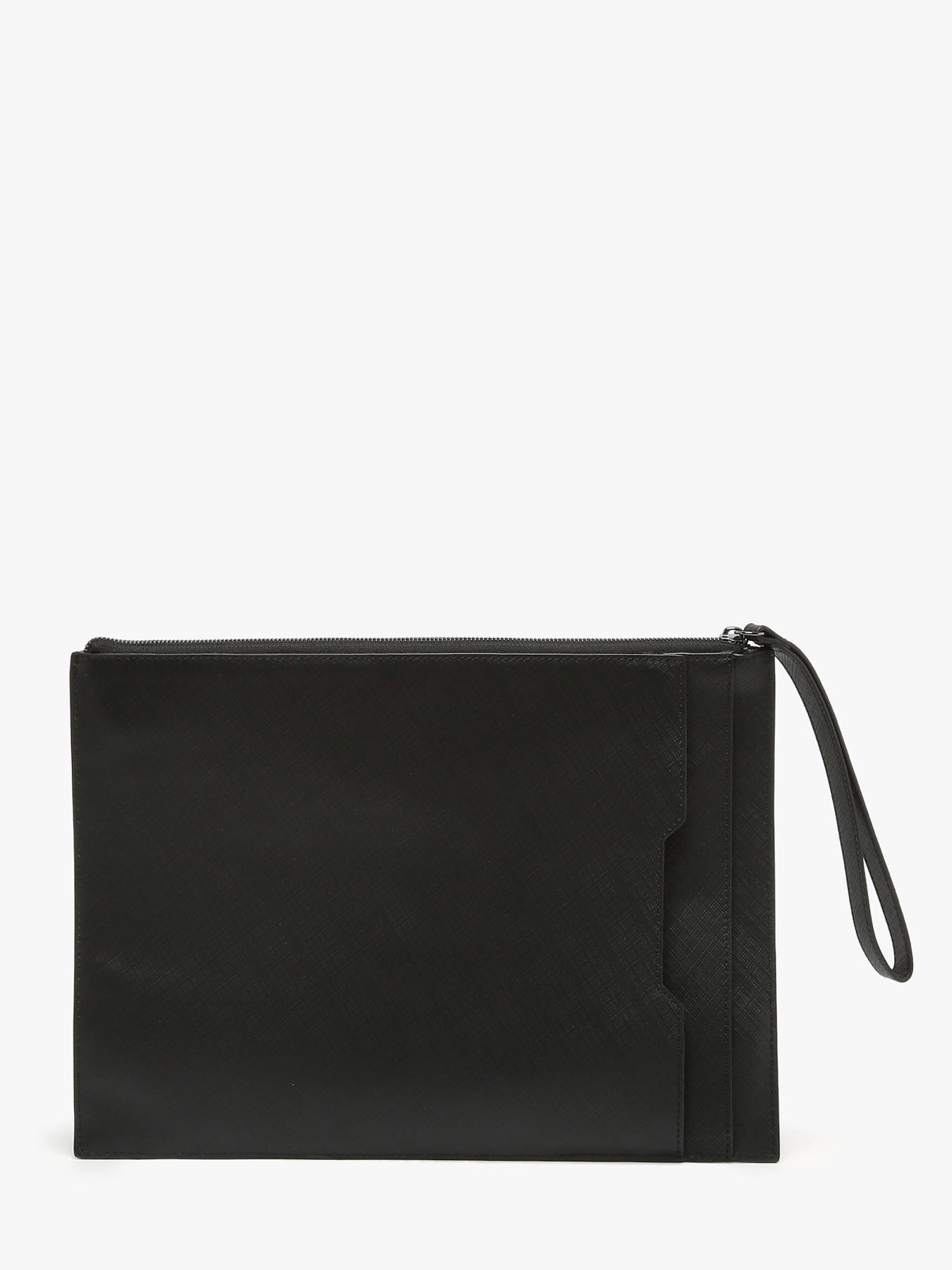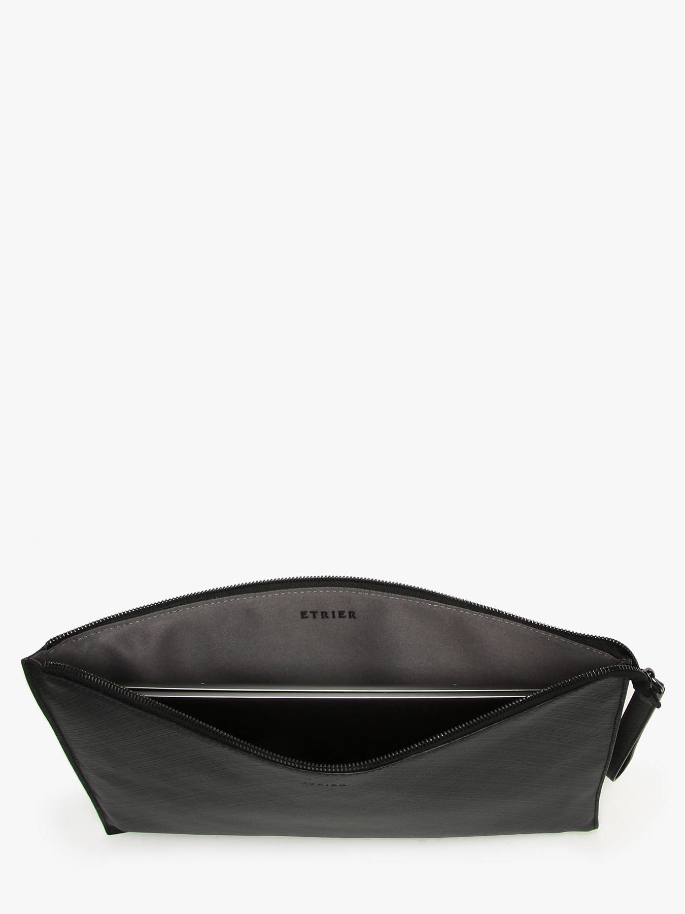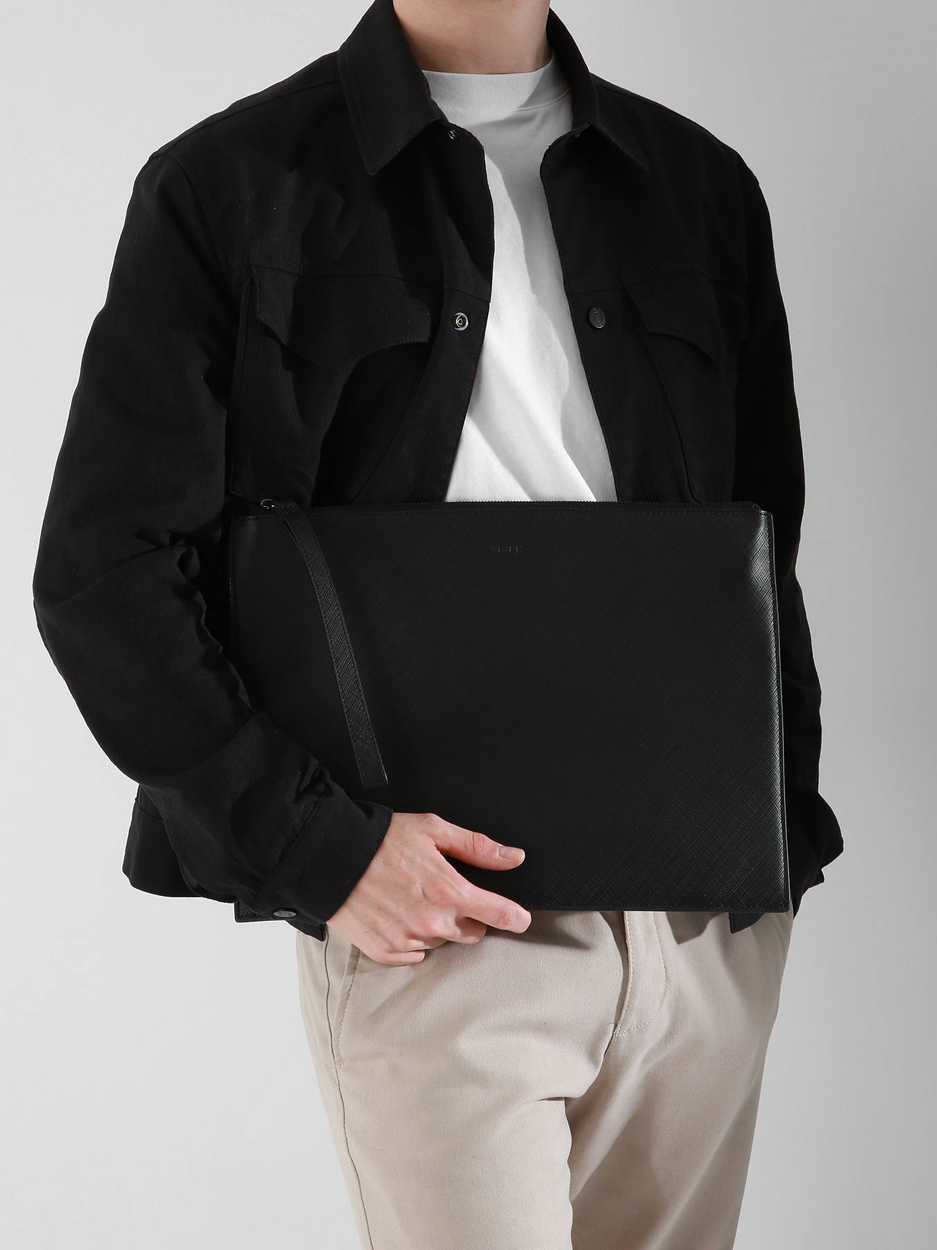 Cette housse d'ordinateur de la ligne Flèche, en cuir texturé, offre une protection élégante et robuste pour votre appareil. Son design épuré allie sophistication et fonctionnalité, garantissant un transport sécurisé de votre ordinateur. Cette pochette est astucieusement conçue avec deux poches intégrées à l'arrière, idéales pour glisser et organiser vos papiers.