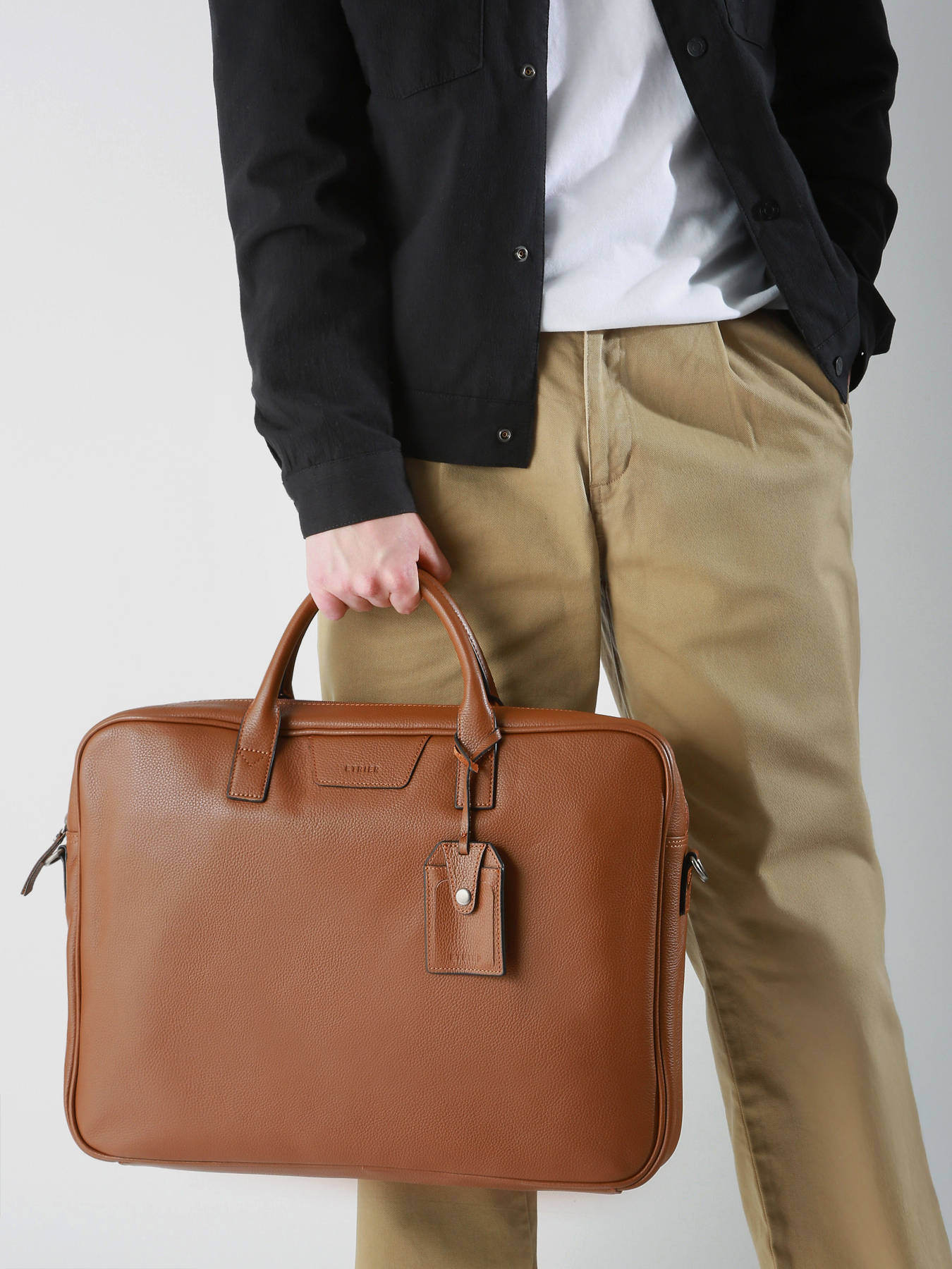 Voici un porte-documents issu de la ligne Flandres signé Etrier en cuir de vachette. Il dispose d'un vaste compartiment pouvant contenir vos documents A4 ainsi qu'un ordinateur portable. Pratique, il possède également une poche au dos ainsi que des rangements à l'intérieur. Lors de vos déplacements, portez-le en croisé grâce à sa bandoulière amovible et réglable. Sa grande poche à l'arrière pourra accueillir vos plus petits objets sans problèmes. Son design sobre et élégant ira parfaitement avec vos tenues professionnellles.