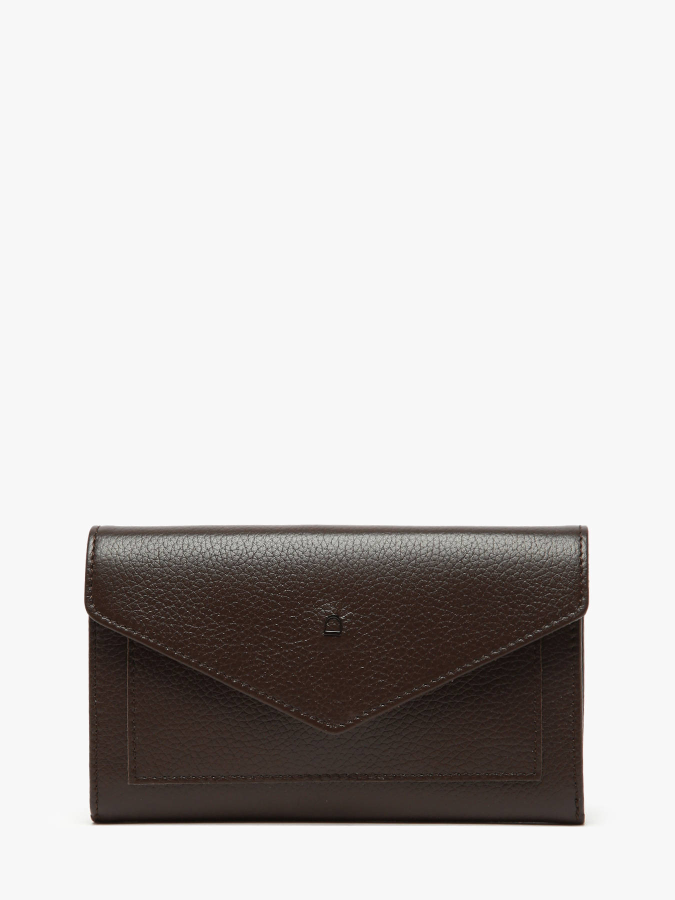 Un portefeuille élégant et tendance, grâce à sa forme enveloppe, signé Etrier. Compact et pratique, le portefeuille Madras se glisse aisément dans tout type de sac. Il dispose de trois poches simples, douze poches carte bancaire, deux poches billets et une poche zippée pour la monnaie.  Il se compose de cuir et se ferme à l'aide d'un bouton pression.