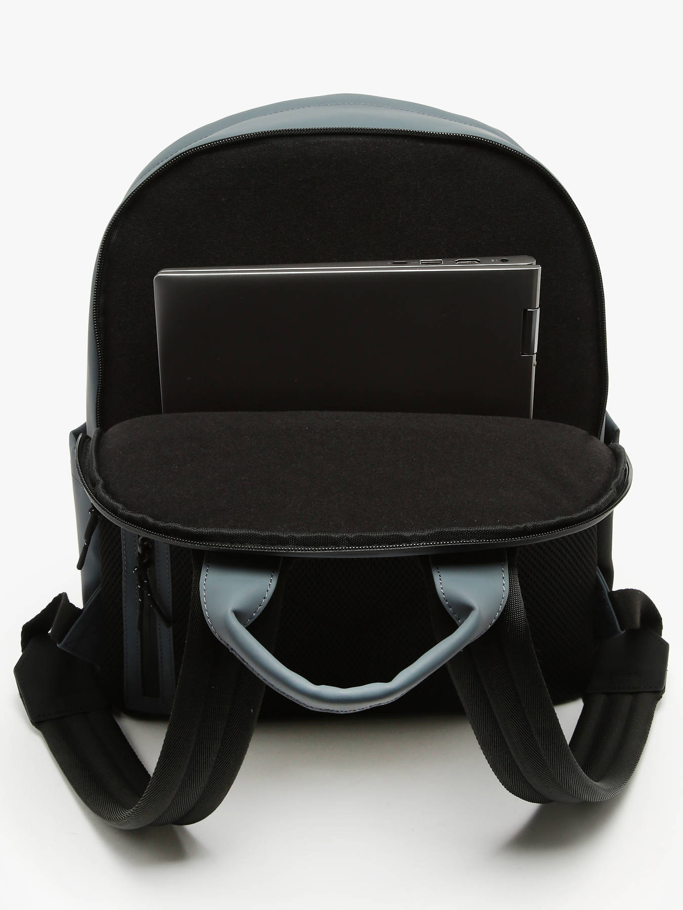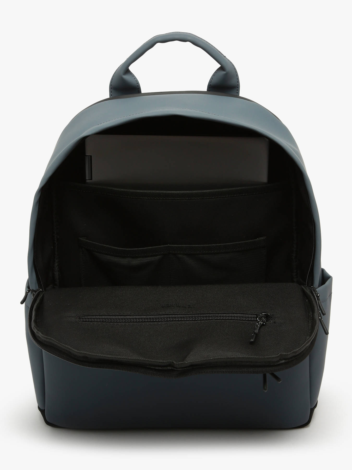 Ce sac à dos business de la ligne Impulsion, en polyuréthane imperméable, combine élégance et praticité. Il arbore un logo en relief ton sur ton et dispose d’un passant de poignée télescopique. Il comprend deux poches avant, une poche arrière, et à l’intérieur, il est divisé en deux compartiments avec trois poches simples, une poche éclair et une poche renforcée pour un ordinateur 15"".