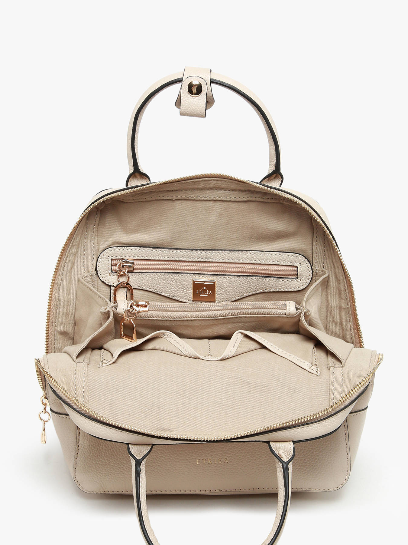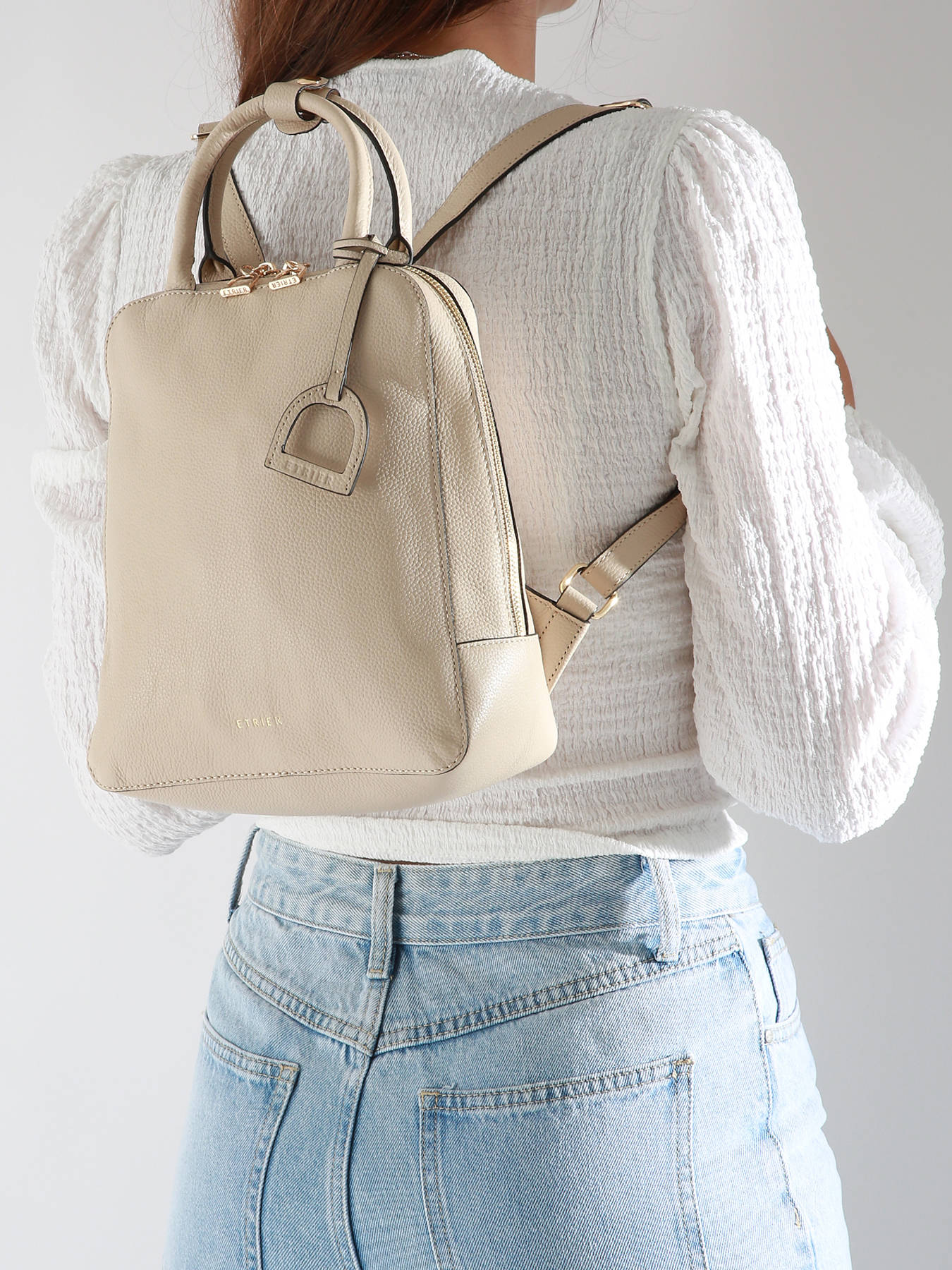 Le sac à dos ETRIER de la ligne TRADITION, emblématique de la marque, combine cuir grainé intemporel et design à la fois minimaliste et élégant, rehaussé d'un détail en forme d'étrier. Ce modèle spacieux propose un grand compartiment principal, complété par deux poches simples et deux poches zippées pour une organisation optimale.