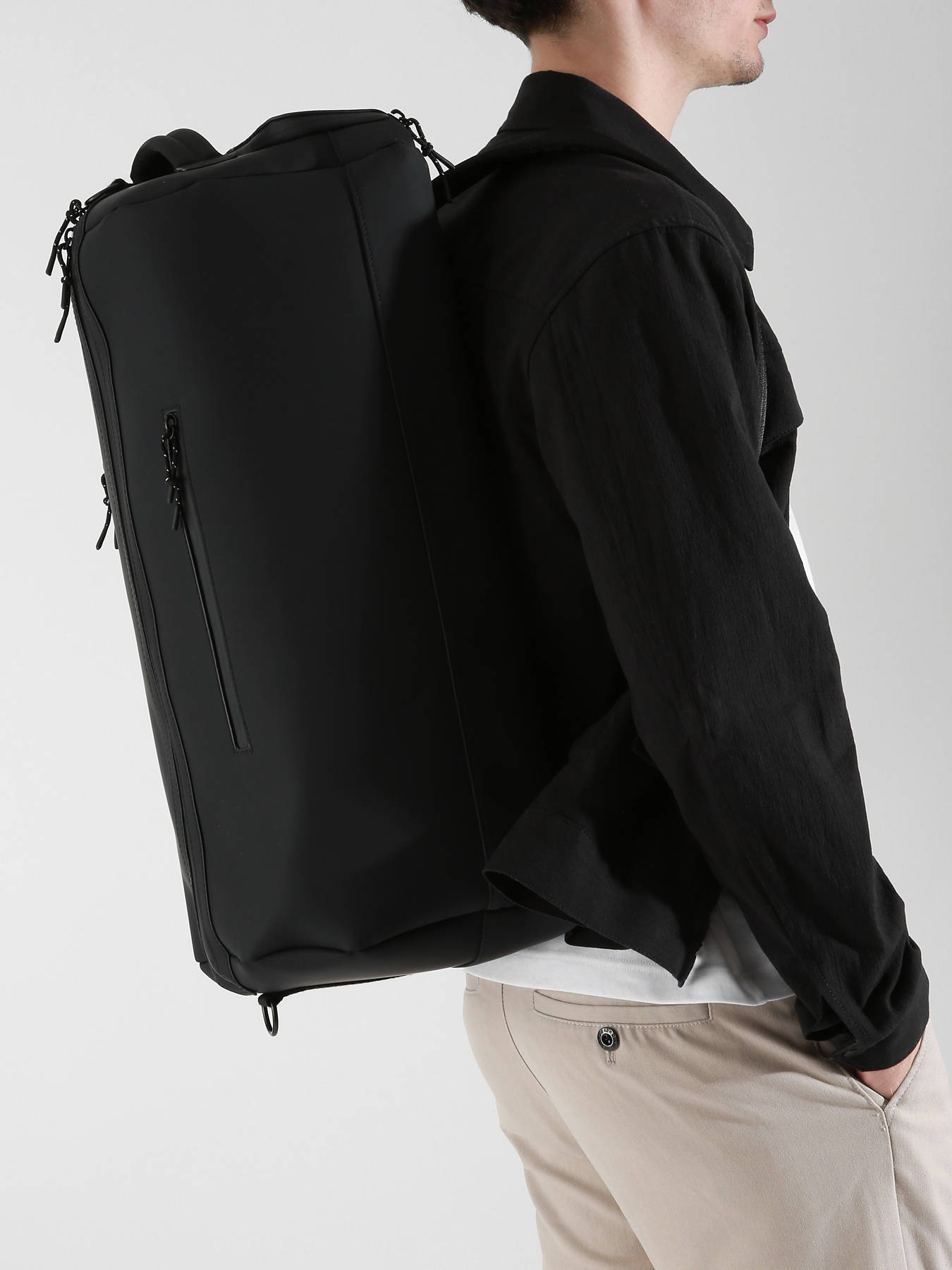 Ce sac de voyage cabine de la ligne Impulsion, en polyuréthane imperméable, combine praticité et élégance. Il se porte facilement au dos grâce aux bretelles situées à l'arrière du sac, tandis que les anses peuvent être rangées dans les poches latérales. Il dispose également d’une poche pour les chaussures et d’un compartiment rembourré pour un PC 13 pouces. Le logo en relief ton sur ton à l'avant ajoute une touche discrète et raffinée.