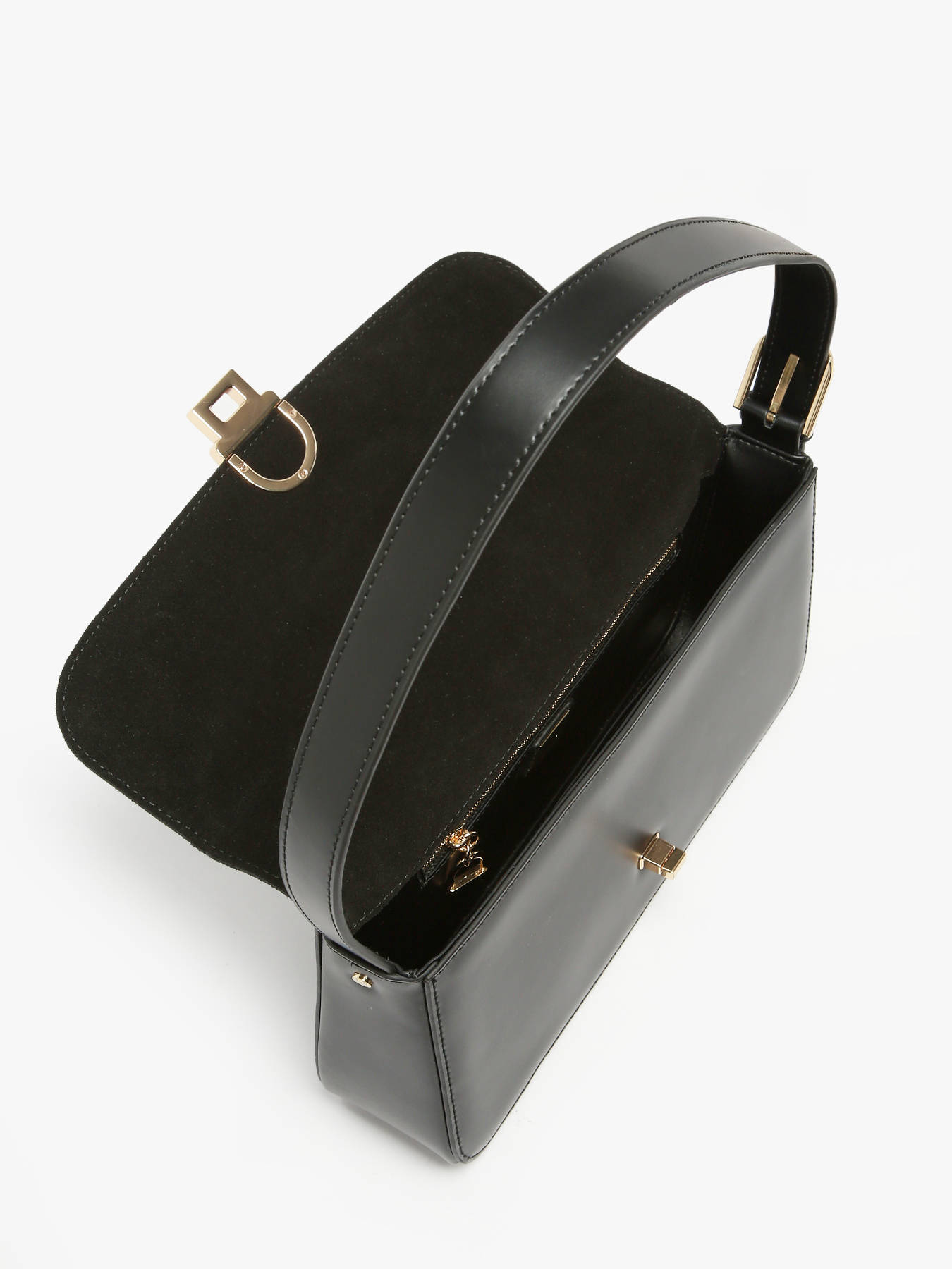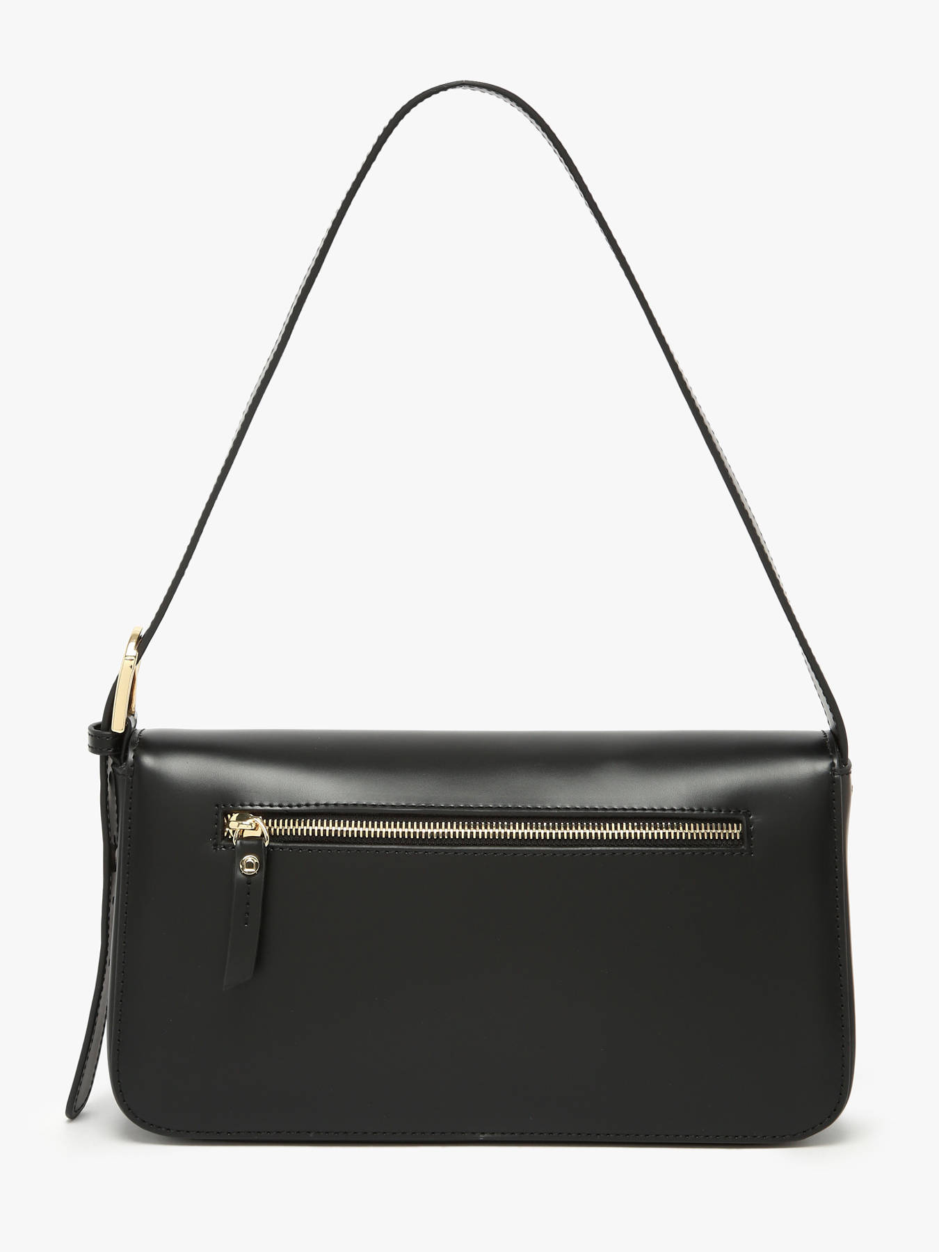 Le sac porté épaule ETRIER de la ligne ALTAIR revisite avec élégance la forme baguette cette saison. Il se distingue par une poche au dos et une fermeture par rabat ornée d’un fermoir doré, emblématique de l’identité ETRIER. Sa anse, réglable sur le côté, permet d’ajuster facilement la hauteur du porté pour un confort optimal. L’intérieur, pensé pour le quotidien, dispose d’une poche plaquée et d’une poche zippée, alliant praticité et raffinement.