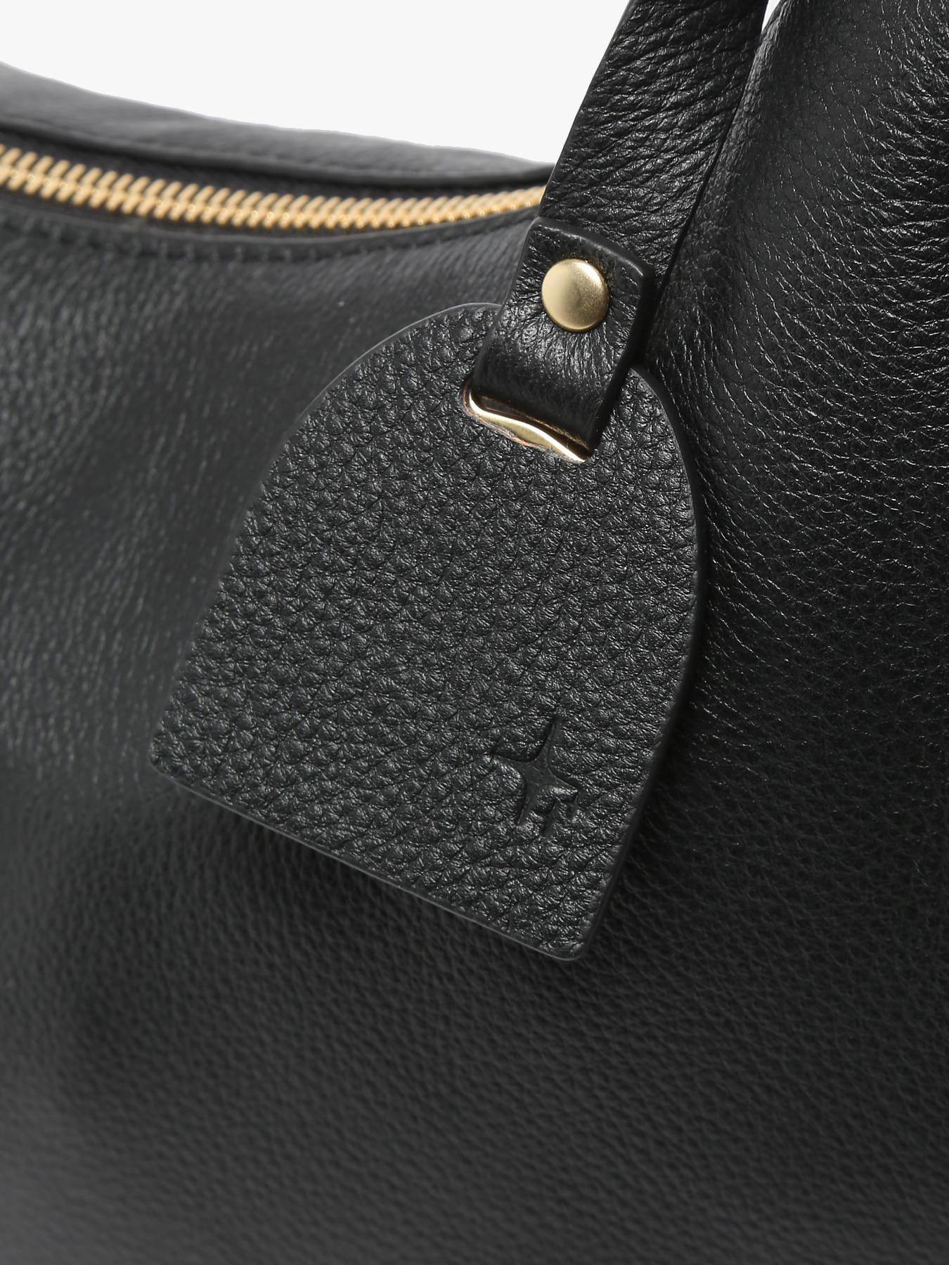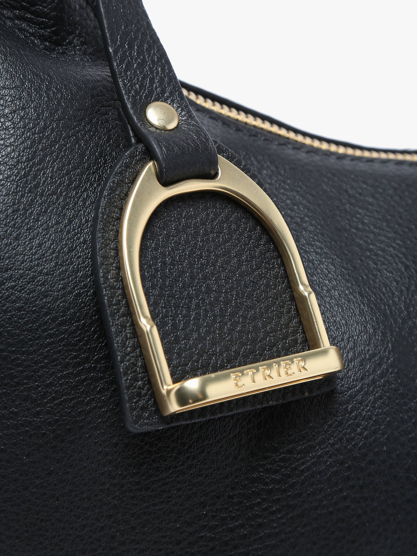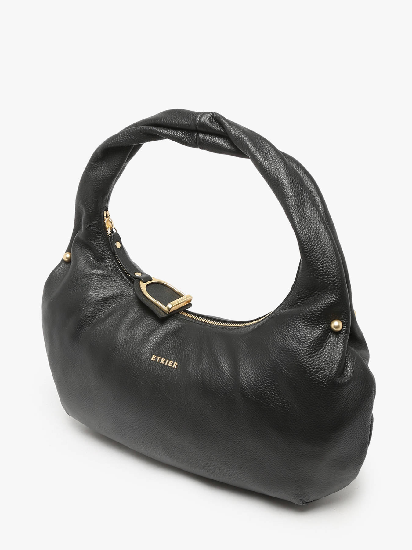 La anse twistée et les bijoux métalliques délicats perforant les côtés créent un look contemporain et original. À l’intérieur, une étiquette en cuir célèbre cette collaboration exclusive, et le curseur en cuir de la fermeture zippée, orné du bijou ETRIER, ajoute une note raffinée avec des étoiles embossées au verso, symbolisant la communauté fidèle de Babyatoutprix, un clin d’œil subtil mais élégant.