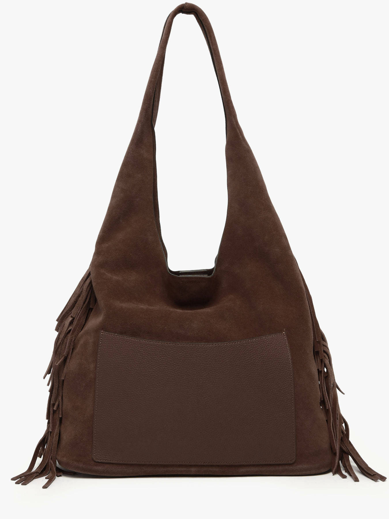 Le sac porté épaule ETRIER de la ligne COUNTRY est confectionné en cuir velours. Ce modèle hobo, proposé ici dans son format L, se distingue par sa silhouette souple, ses franges latérales emblématiques et son esprit bohème chic. Il se ferme à l’aide d’une pression aimantée. À l’intérieur, un pochon amovible permet de sécuriser vos effets personnels tout en structurant l’espace. Le dos du sac accueille une poche plaquée en cuir lisse. Dans son format généreux, ce sac incarne un style libre et élégant, idéal pour l’hiver, avec des textures authentiques et un mouvement naturel.
