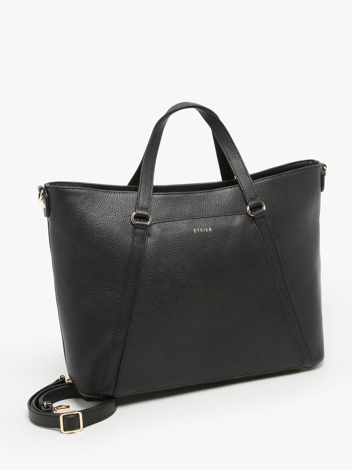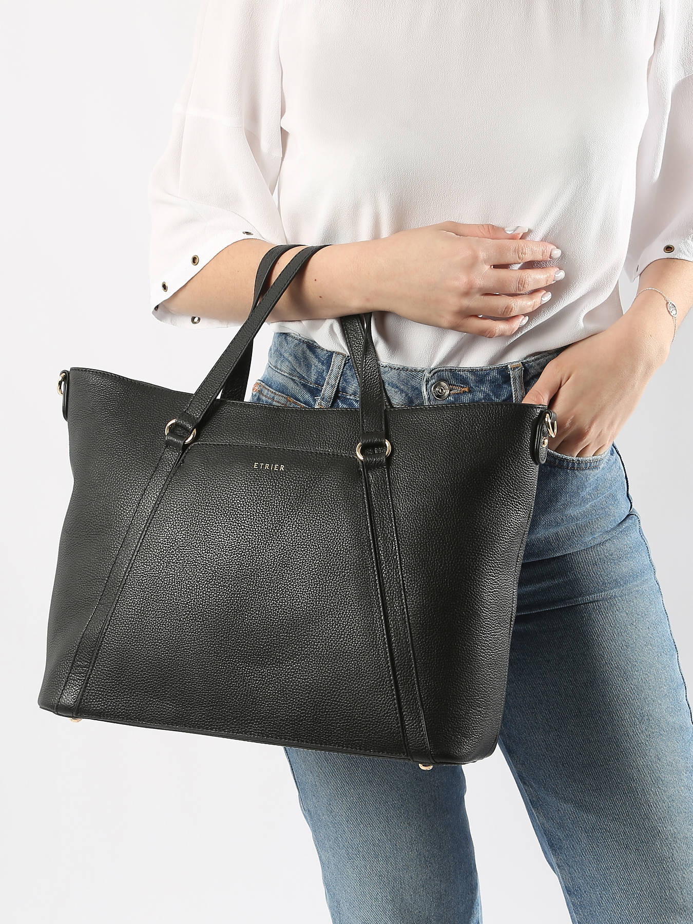 Le sac porté épaule ETRIER de la ligne TRADITION se présente dans une version business, offrant de multiples rangements pratiques. Conçu pour être porté à la main ou en bandoulière, il peut accueillir de nombreuses affaires, y compris des documents au format A4 et un ordinateur portable de 13"". Doublé en coton, il conserve les codes discrets de la ligne TRADITION , avec sa bijouterie dorée et son cuir grainé pleine fleur.