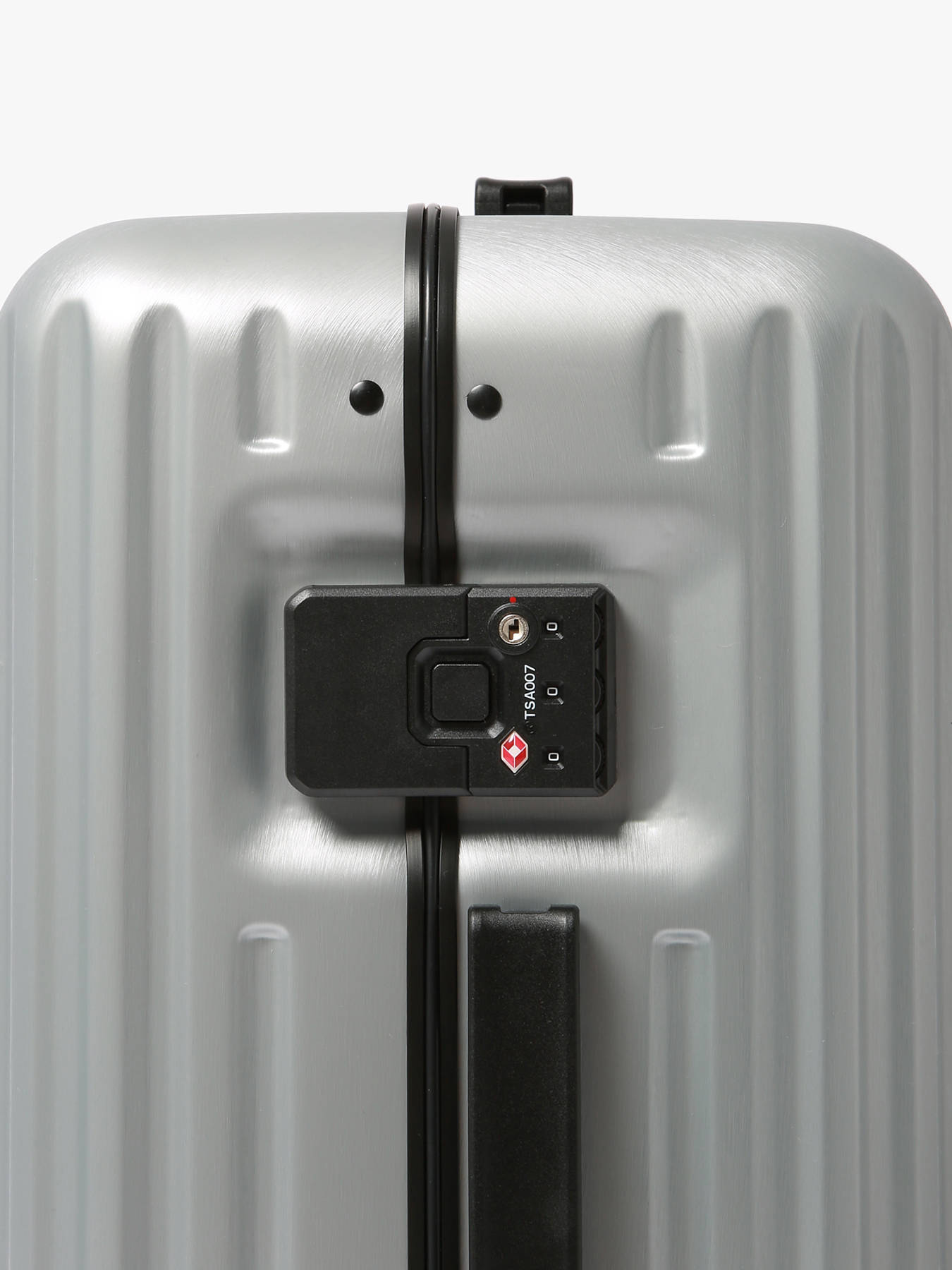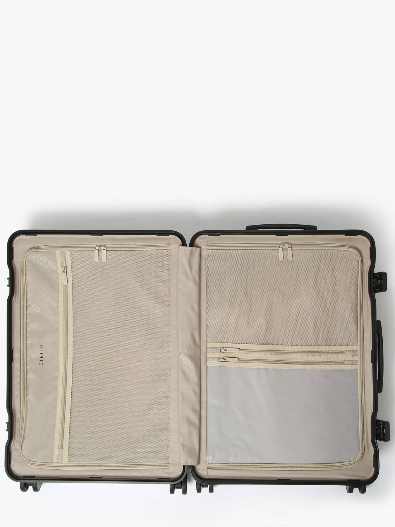 La valise de la ligne WASHINGTON associe robustesse et raffinement pour vos longs séjours. Avec ses 4 roues jumelées, son cadre en aluminium, sa fermeture multipoints et deux serrures TSA, elle garantit sécurité et maniabilité. Son design élégant, avec un logo Etrier gravé ton sur ton et imprimé argenté sur la poignée, s'accompagne d’un volume généreux de 80L et d’une poche spéciale pour les effets humides, offrant une organisation pratique. Disponible en noir ou argent, elle est idéale pour des voyages alliant style et praticité.